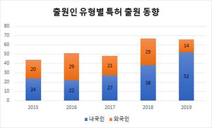 택배 등 물류산업의 핵심인 물류창고에 대한 스마트화가 주요 과제로 떠오른 가운데 스마트 물류창고 특허출원이 활발한 것으로 조사됐다.특허청은 물류창고 자동화 관련 출원은 2015년 44건에서 2019년 66건으로 최근 5년간 연평균 10.7% 증가했다고 밝혔다. 특히 내국인 출원은 2015년 24건에서 2019년 52건으로 연평균 21.3% 증가해 전체 출원