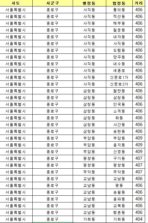 상세한 읍·면·동 단위의 거리는 ‘화물차 안전운임신고센터’ 홈페이지의 공지사항에서 확인할 수 있다.