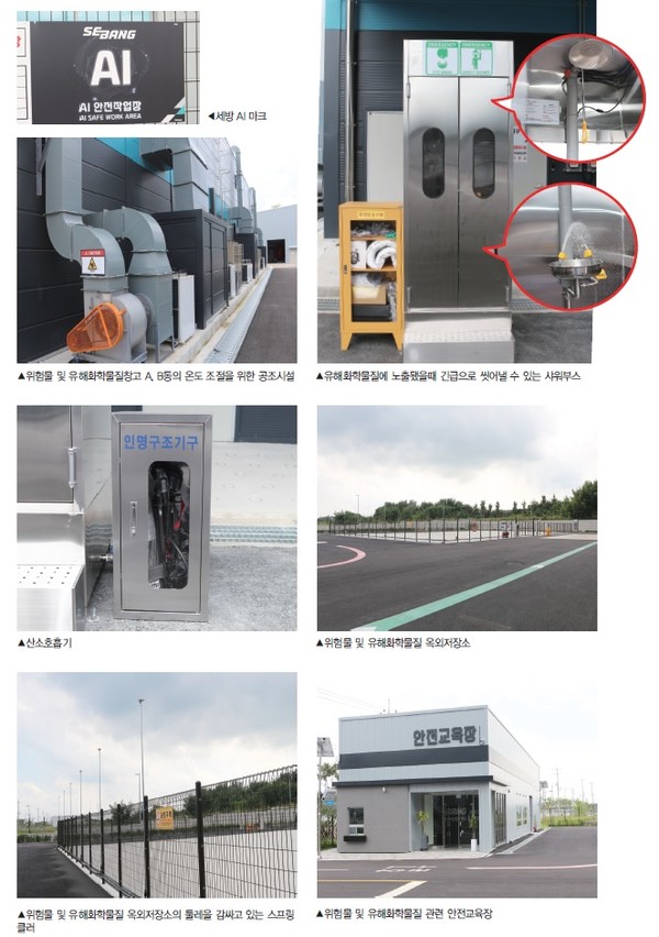특히 완주복합물류센터의 위험물 및 유해화학물질 창고는 이 복합물류센터의 핵심시설로 관련 설비는 국내 최고 수준을 자랑한다. 방폭과 방유 구조를 기본으로 작업자와 화물의 안전을 책임질 수 있는 설비를 갖췄다. 이중 방유벽, 자동 살수·스프링클러는 물론 가스·온도·누출 센서 등은 국가 법규의 기준을 충족하고 있다. 특히 이러한 센서들은 발생된 상황에 반응하는 것은 물론 상황이 발생하기 전 미리 상황을 감지 할 수 있는 능동형 시스템으로 기존 위험물 및 유해화학물질 창고와 차별화를 이뤘다. 박찬우 센터장은 “전력제어 EMS·항온항습·쿨링포그 시스템, AI CCTV·IoT 센서 기반 통합관제, 실시간 이상감지 대시보드 운영 계획을 수립하고 운영하고 있다”며 “이를 통해 상황실에서 복합물류센터 내에 일어나는 일들을 한 눈에 확인하고 물류센터 전체를 컨트롤 할 수 있다”고 설명했다. 이어 그는 “AI시스템의 경우 안전모 착용·열화상감지·작업자 쓰러짐 등을 관리자에게 즉시 알릴 수 있도록 체계가 되어 있다”고 강조했다. 외부의 평가 또한 높은 수준이다. 세방의 완주복합물류창고를 둘러본 한 위험물 관계자는 “위험물 및 유해화학물질 창고 중에서는 국내에서 1, 2위로 꼽을 수 있을 정도의 시설을 갖춘 물류창고로 보인다”며 “인상적인 부분은 다양한 위험물과 유해화학물질을 다룰 수 있고 차량의 이동 동선 또한 잘 되어 있으며 일반 화물을 다룰 수 있는 상온창고와 위험물 및 유해화학물질 옥외 저장소까지 두루 갖춘 것”이라고 평가했다.